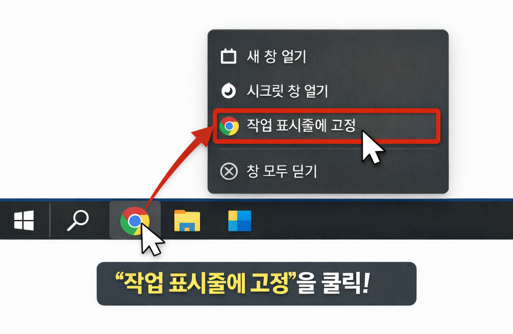 작업표시줄·시작 메뉴에 크롬 바로가기 고정하기
